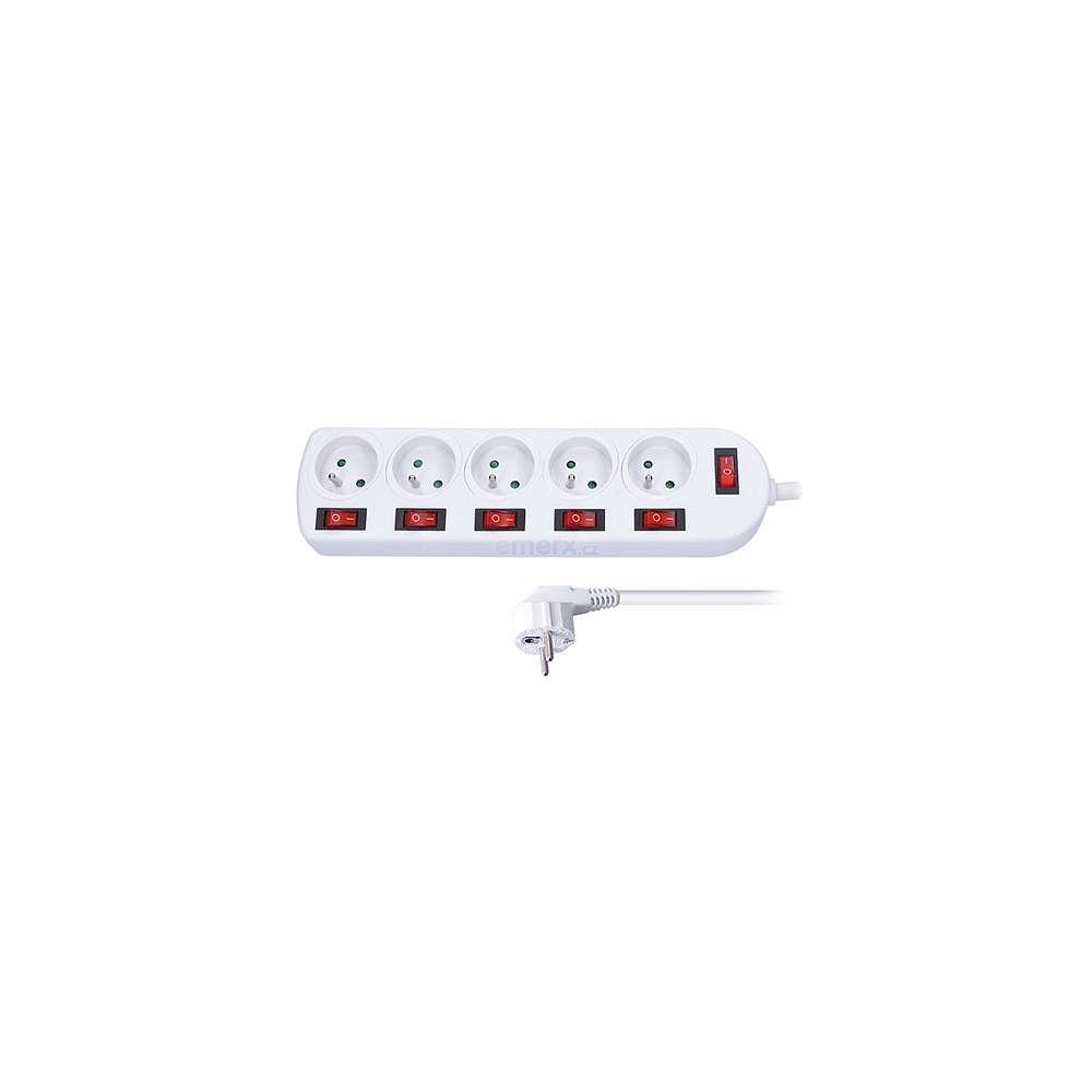 Prodlužovací přívod, 5 zásuvek s individuálním vypínačem + celkový vypínač