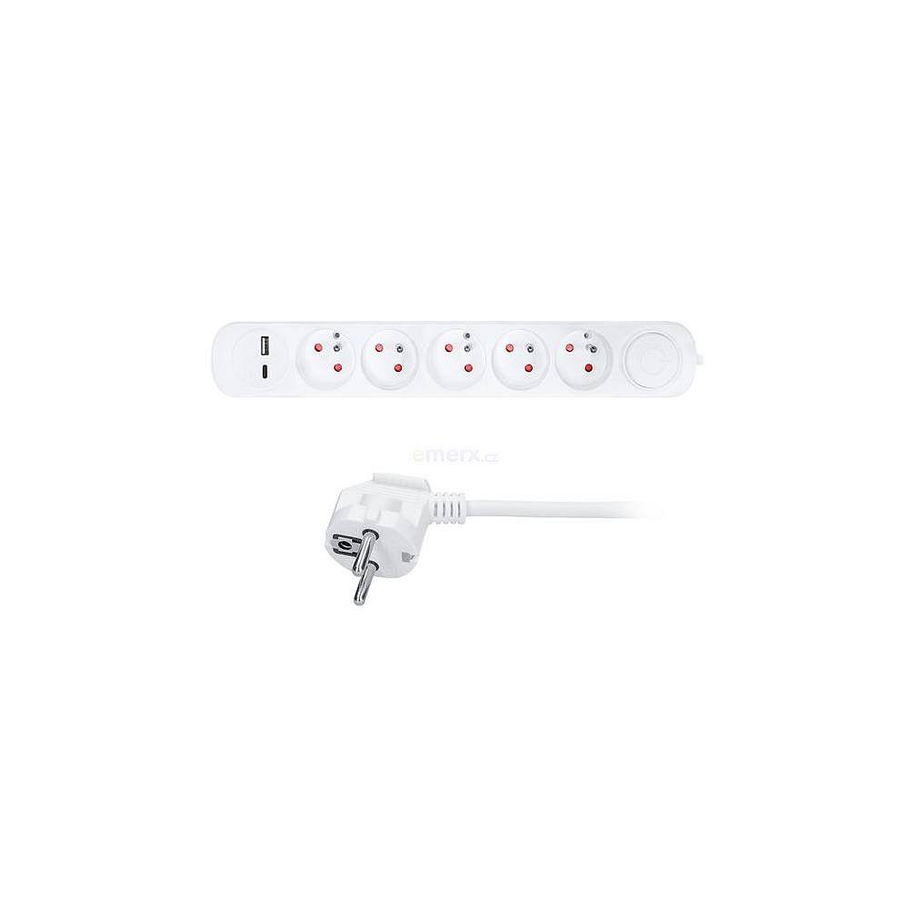 Prodlužovací přívod s USB A+C nabíječkou 2.4A, 3m, 3 x 1mm2, bílý, vypínač 351 Kč
