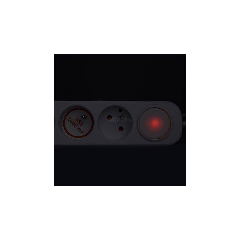 Prodlužovací přívod s USB A+C nabíječkou 2.4A, 3m, 3 x 1mm2, bílý, vypínač