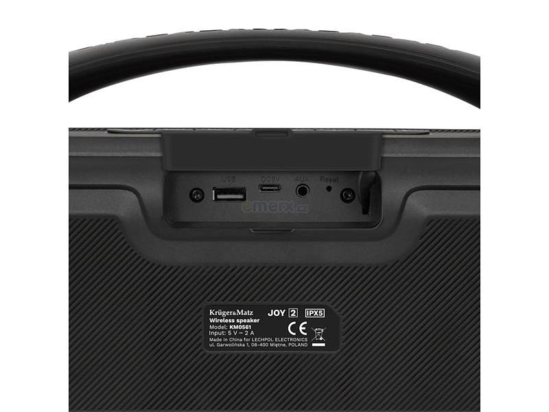 Bluetooth reproduktor Kruger & Matz Joy 2 je vybaven 2 středopásmovými měniči a 1,5palcovým výškovým reproduktorem, s celkovým výkonem 20 W. Navíc má tento model dvě pasivní membrány, které zdůrazňují zvuk basových zvuků.