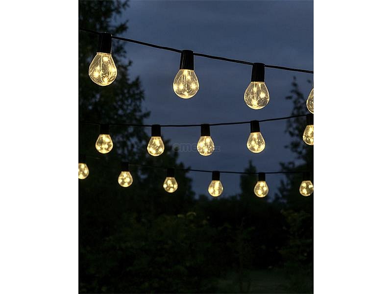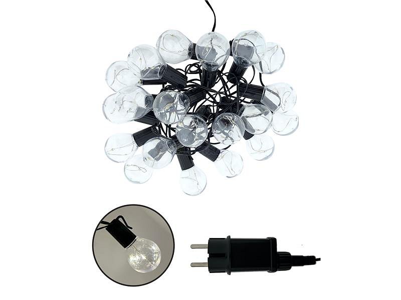 Vytvořte si příjemnou atmosféru na zahradě, terase nebo balkóně s dekorativním LED osvětlením TR-626JS. Tento světelný řetěz obsahuje 20 stylových žárovek, z nichž každá ukrývá 3 teplé bílé LED diody (2700K) – celkem tedy 60 LED na celkové délce 5,8 metru. Robustní plastové provedení s krytím IP44 zajišťuje odolnost vůči povětrnostním vlivům, a je tak ideální pro venkovní použití. Světelný řetěz je napájen ze sítě (220–240 V) a má bezpečný výstup 4,5 V DC / 1,5 W. Díky 2 metrovému přívodnímu kabelu je instalace snadná a flexibilní.