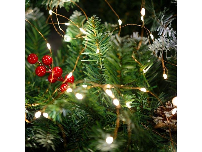 Tento 10metrový světelný řetěz s microLED diodami a teplým bílým světlem je ideální volbou pro vytvoření příjemné atmosféry. 100 LED diod vyzařuje jemné, přátelské světlo – ať už se jedná o vánoční výzdobu, svatbu nebo intimní večerní osvětlení. Díky flexibilnímu drátu jej lze snadno tvarovat a použít na jakémkoli povrchu či dekoru. Funguje na baterie, takže není zapotřebí přívod elektřiny.