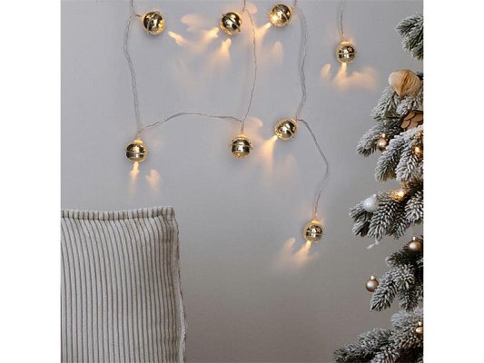 Vánoční dekorativní řetěz se zlatými rolničkami i a LED diodami