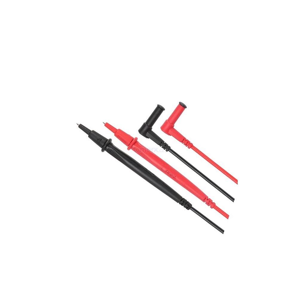 - dĺžka: skúšobné vodiče 900 mm- dĺžka: hrotu a tela 136 mm- dĺžka hrotu sondy: 15,7 mm- dvojitá izolácia, s odnímateľnou krytkou- pripojenie do pravého uhla- kategória meraní: CAT III 1000V / CAT IV 600V 10A- použitie: multifunkčné konektory, všetky multimetre- balenie: 1 pár
