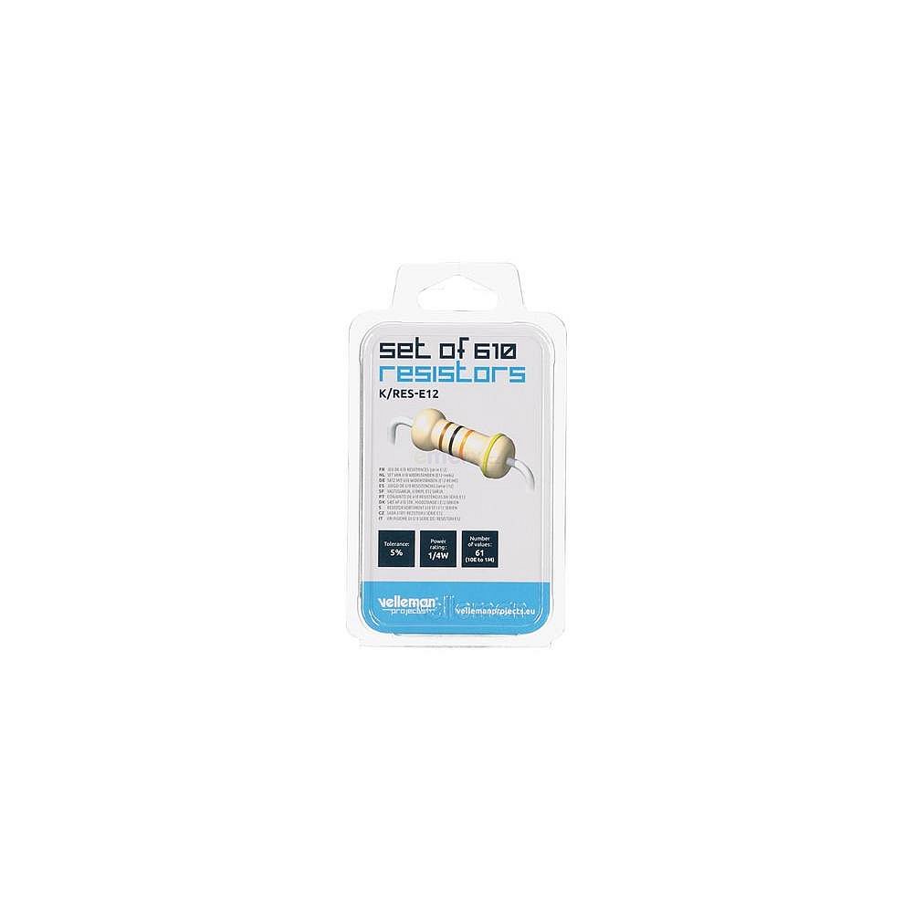Sada 610 uhlíkových rezistorů, řada E12, 61 hodnot (od 10R - 1M), 10 kusů na jednu hodnotu, 0,25W 5% 0207