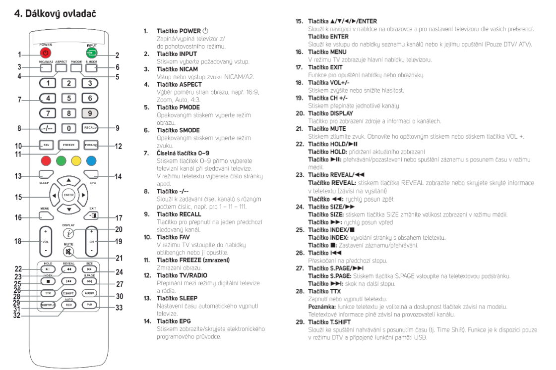 Sencor SLE 40F20TCS Náhradní dálkový ovladač stejného vzhledu 329 Kč
