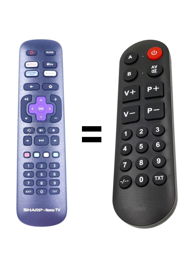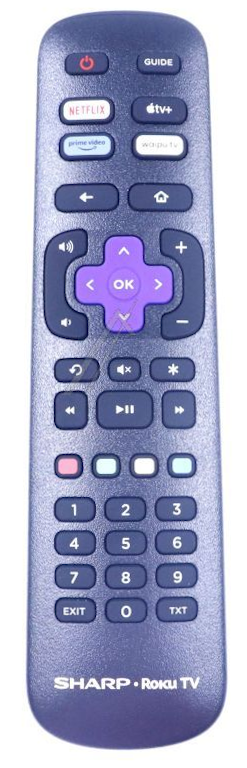 TESTOVÁNO POUZE ZÁKLADNÍ FUNKCE. Náhradní dálkový ovladač (NEPOTŘEBUJE KÓDY) pro televizory SHARP ROKU TV. Například pro: 4TC55FJ2EL2NB, 55FJ2E, A55UFJ2L2EBC33, RMC/MTC/0001N, RMC/MTC/0005N