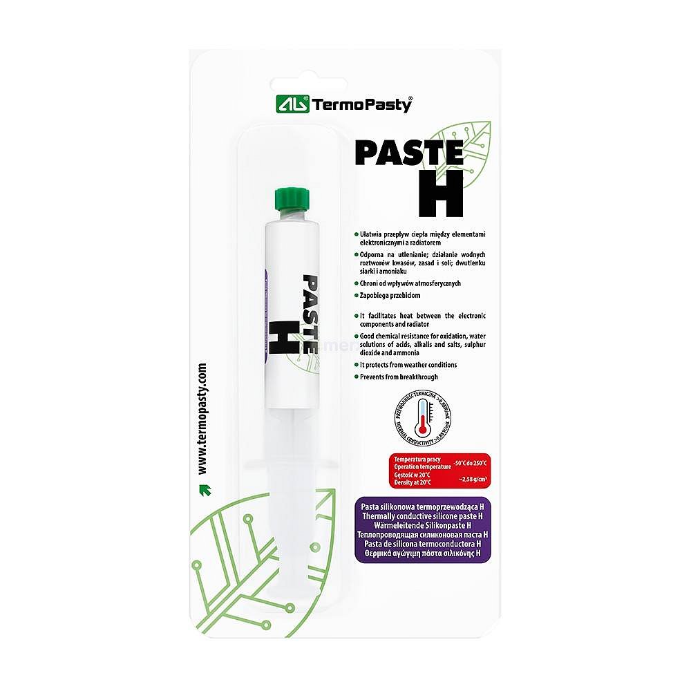 Nezbytná v zařízeních, která vyžadují efektivní odvod tepla – silikonová pasta H s tepelnou vodivostí >0,88 W/mK zaručuje optimální chlazení a ochranu součástek před přehřátím.