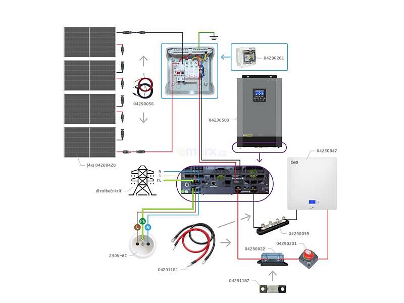 Solární sestava ostrovní TRINA 1800Wp, baterie LiFePO4 48V 100Ah, měnič 48V/230VAC 5500W Solární sestava ostrovní TRINA 1800Wp, baterie LiFePO4 48V 100Ah, měnič 48V/230VAC 5500W