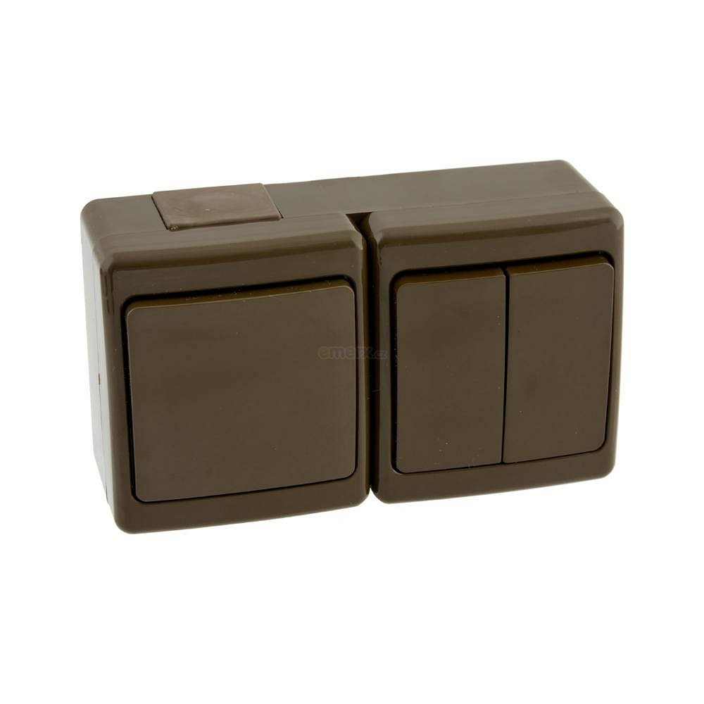 Vypínač IP44 BETA, jednopólový + lustrový, řazení 1 + 5 barva hnědá