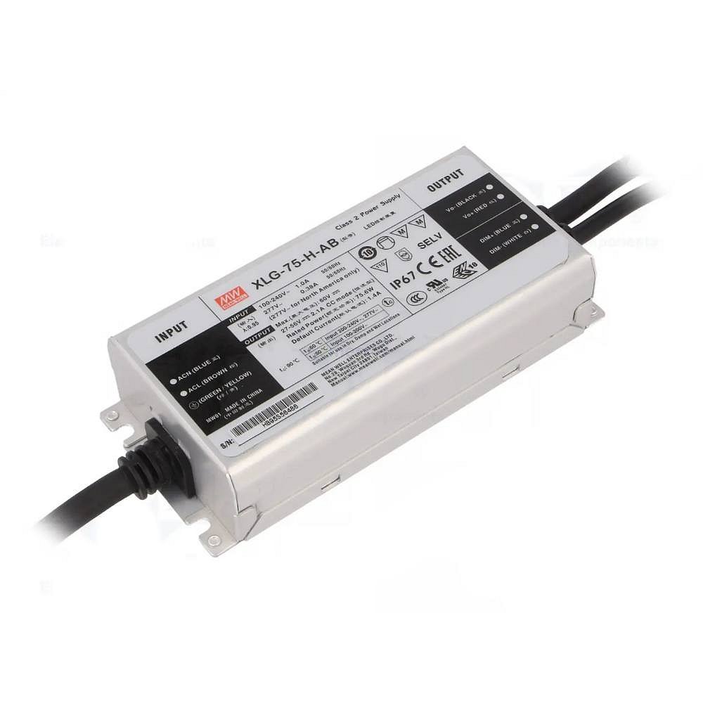 Spínaný zdroj konstantního výkonu IP67, 75W, 27..56V/1,3..2,1A DC