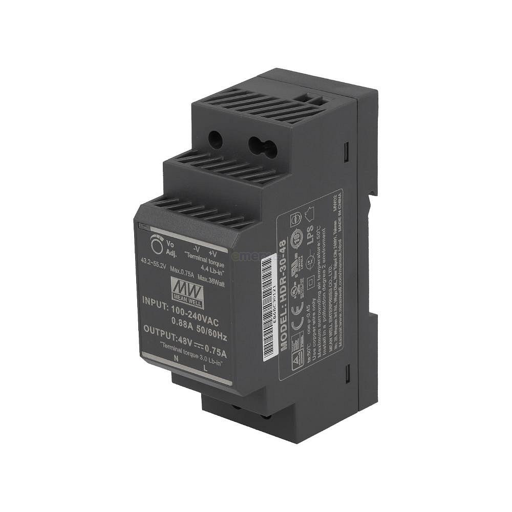 Spínaný zdroj na DIN lištu 36W, 48V/0,75A DC