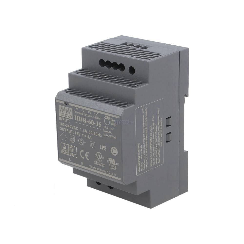 Spínaný zdroj na DIN lištu 60W, 15V/4A DC