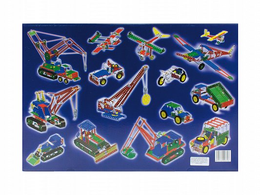 Čtyřvrstvá klasická stavebnice. Obsahuje mimo základní sestavu dílů také navíc další součástky pro stavbu velkého požárního auta, velkých jeřábů a dalších modelů. Návod na 100 modelů - hasičský automobil, autojeřáb atd.