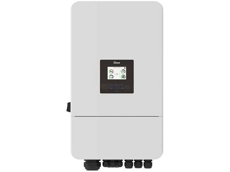 Všestranný nízkonapěťový 3fázový hybridní měnič Deye SUN-12K 5. generace s nástěnným držákem kombinuje solární invertor a nabíječku baterií. Podporuje asymetrický 3fázový výstup s rozsahem 0 až 6 kW na každé fázi, možnost přetížení o 100 % po dobu 10 s, čímž rozšiřuje aplikační scénáře na absolutní maximum. Měnič je kompatibilní s nízkonapěťovými 40 až 60V bateriemi. Komunikace s BMS je přes CAN nebo RS485 rozhraní a je plně kompatibilní i s nejnovějšími modely baterií jiných značek. Barevný LCD displej zajišťuje uživatelsky přívětivé rozhraní pro přehled i konfiguraci systému (řízení baterie, AC/solární nabíjení v závislosti na různých aplikacích atd.). Největší výhodou tohoto měniče je nastavitelný vstup / výstup „smart load“ kam lze připojit generátor, stringový měnič, nebo topnou patronu pro ohřev vody. Možnosti tohoto portu vám nabízí využít podobné funkce jako wattrouter.