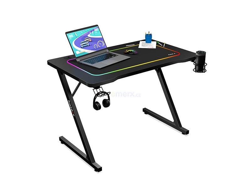 Elegantní stůl určený pro hráče a ty, kteří potřebují funkční a prostorově úsporné pracovní místo. Navzdory kompaktním rozměrům zůstává deska stolu prostorná a odolná, zatímco ocelový rám zajišťuje stabilitu i při intenzivním používání.