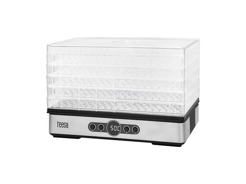 Sušička Teesa nabízí 5 velkých, průhledných sít, která pojmou až 1,7 kg produktů. Průhledné misky umožňují ovládat sušení bez nutnosti otevírání zařízení, což zajišťuje konstantní teplotu a účinnost.