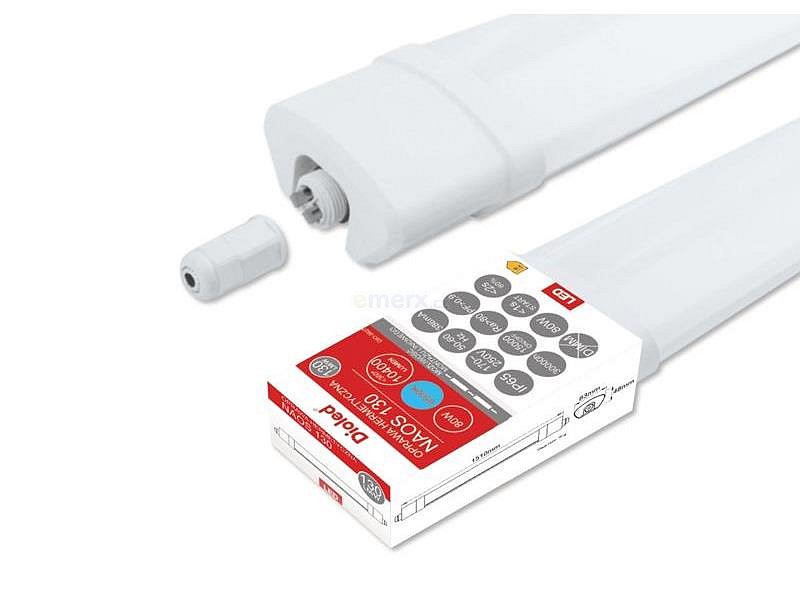 Svítidlo Naos má krytí IP65 a výkon 80 W. Svítí neutrálním bílým světlem 4000K a má jas 10400 lm. Svítidlo je dlouhé 150 cm a používá LED diody s životností až 30 000 hodin.