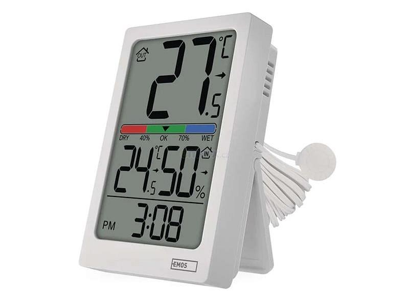 Novinka v řadě drátových teploměrů vám snadno ukáže jaká je teplota jak uvnitř tak venku s rozlišením 0,1 °C, zobrazí vnitřní vlhkost v rozsahu 1 % až 99 % RV, ale také trend teploty nebo ukazatel komfortu ve třech úrovních. S měřením venkovní teploty vám pomůže 1,9 m dlouhé drátové čidlo, které umístíte za okno a teploměr postavíte k oknu nebo pověsíte na zeď v dosahové vzdálenosti od venkovního čidla.