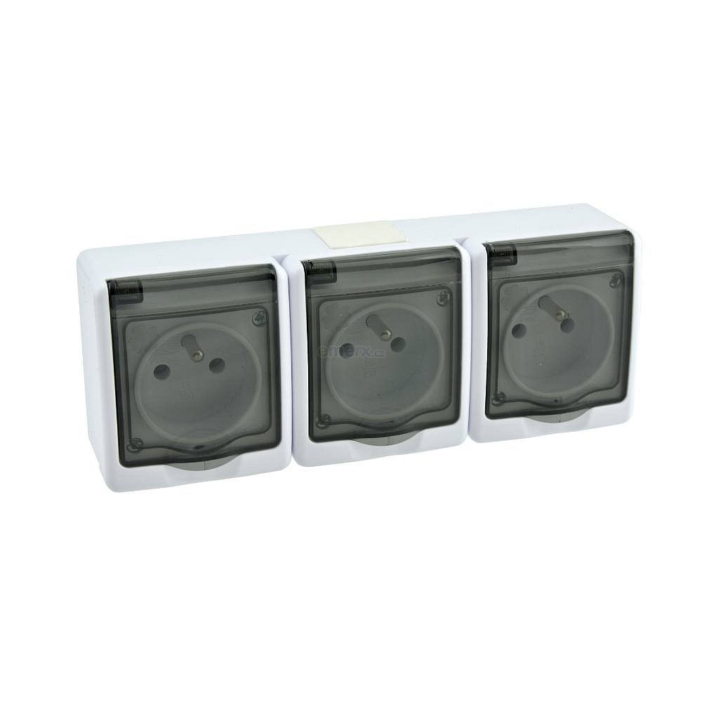 Trojzásuvka na omítku IP44 bílá