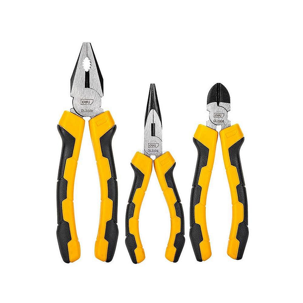 univerzální sada kleští, obsahuje kombinované kleště 8", půlkulaté kleště 6", štípací kleště 6"