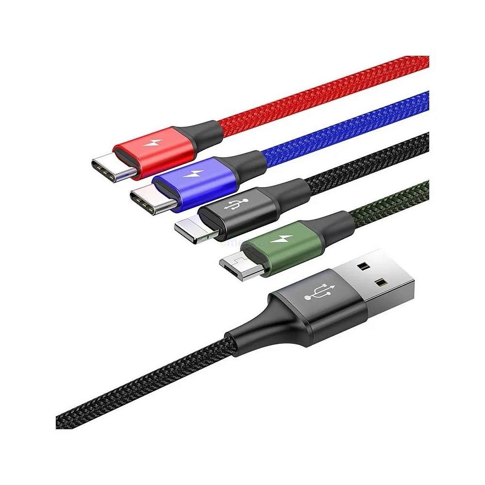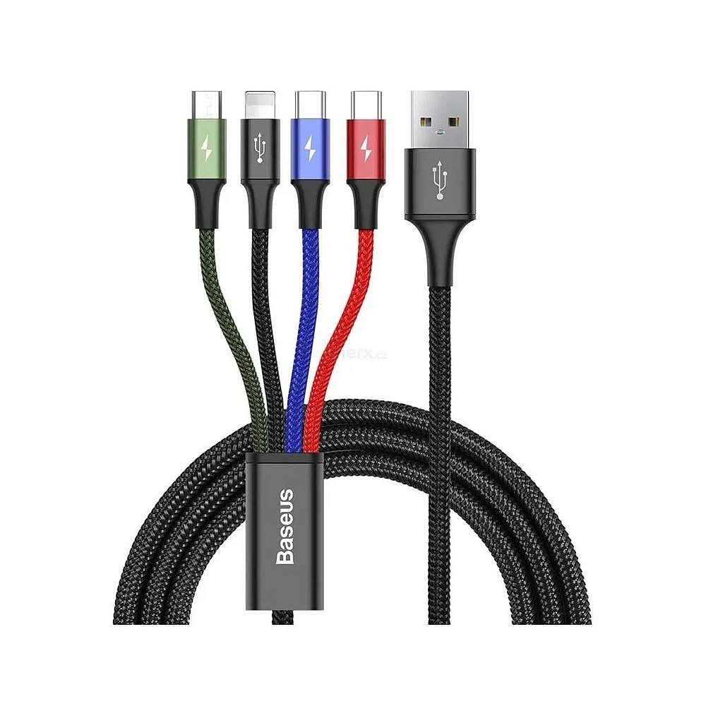 Baseus 4v1 nabíjecí a datový kabel určený pro zařízení s USB-C, Lightning a MicroUSB zařízení.