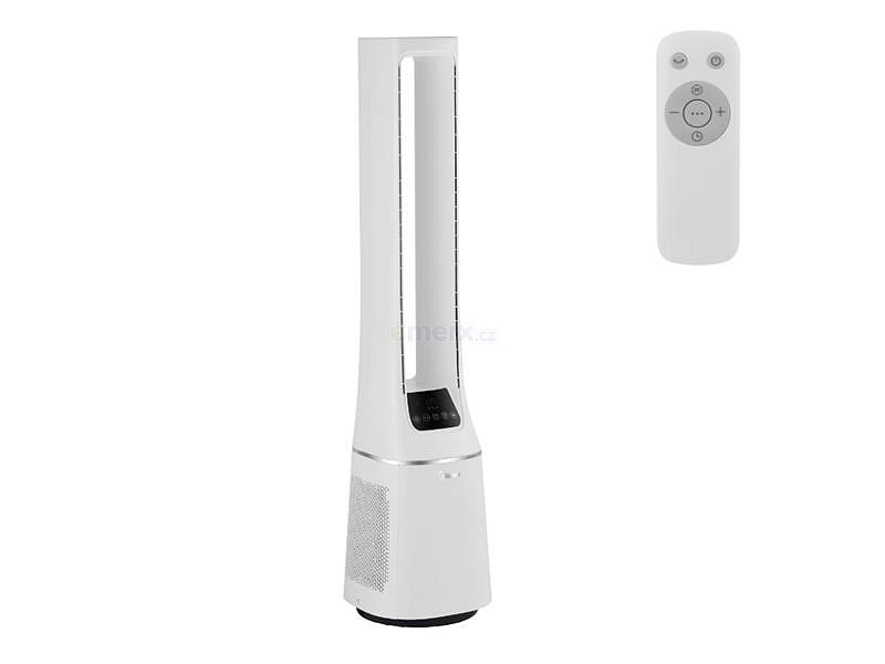 Midea MAM33CPAGW Bezlopatkový sloupový ventilátor s čističkou vzduchu a dálkovým ovládáním.