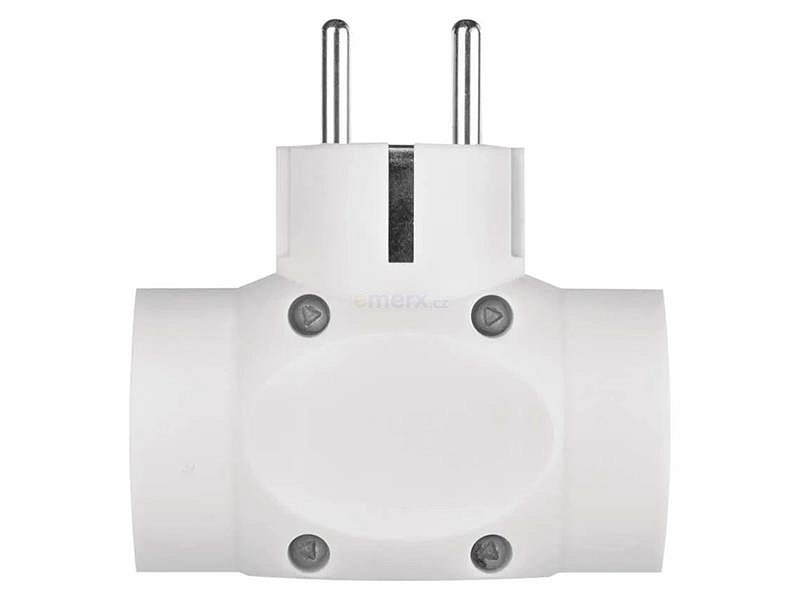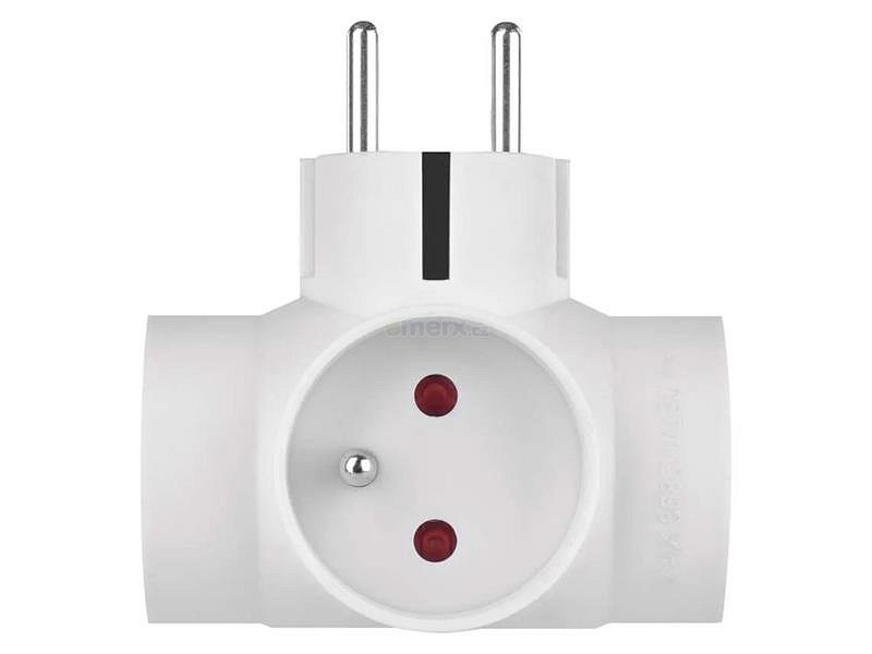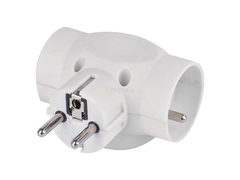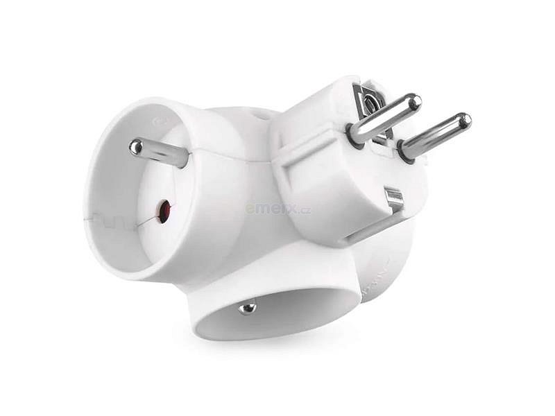 Rozbočovací zásuvka 3×, kulatá, bílá (Adaptor trojnásobný rozbočovací.).