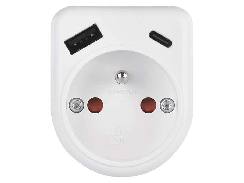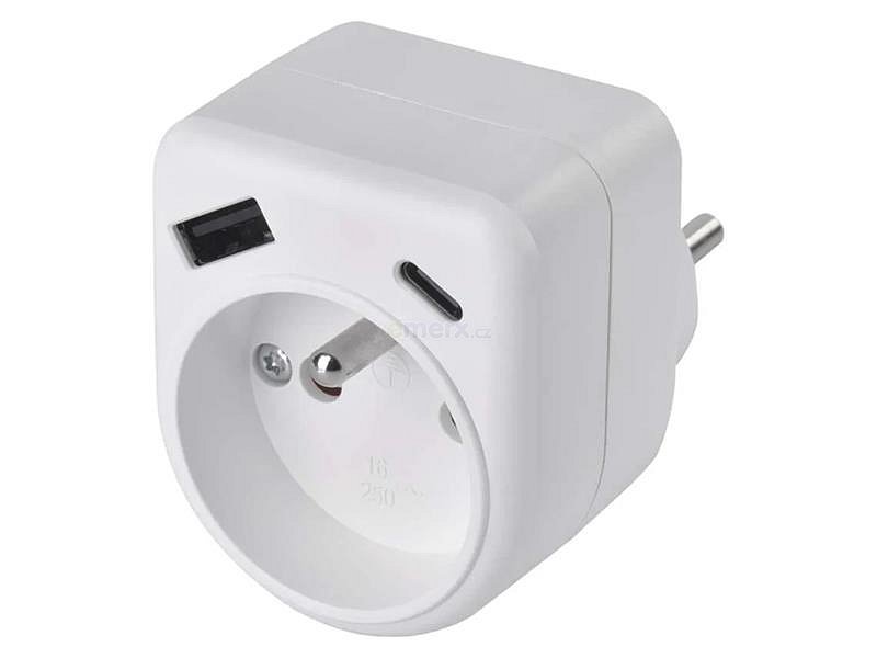 Rozbočovací zásuvka 1×, 1×USB-A+1×USB-C, bílá.