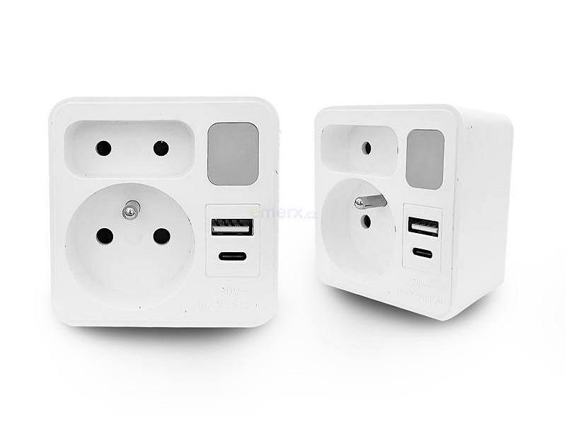 Rozbočovač napájení s nočním světlem, USB a USB-C: