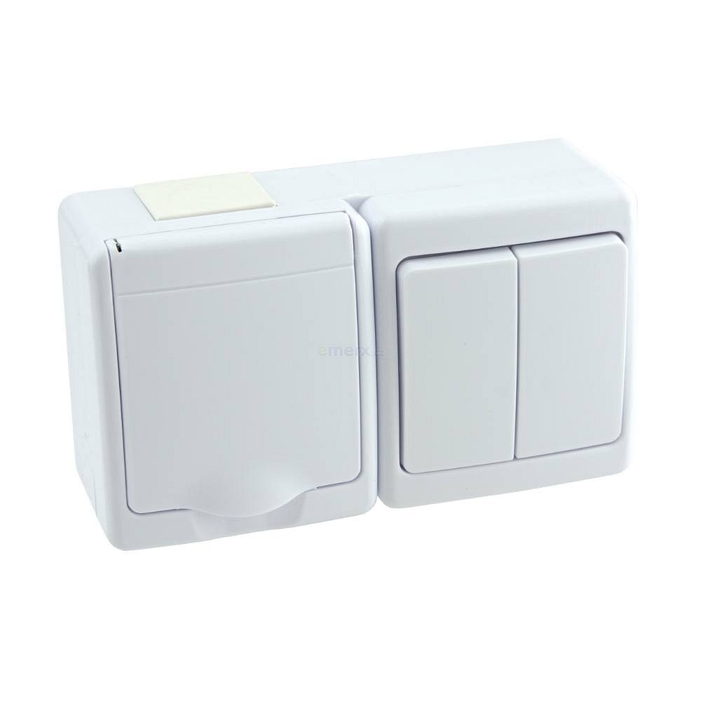 Zásuvka s přepínačem dvojitým č.5 na omítku IP44 bílá 134 Kč