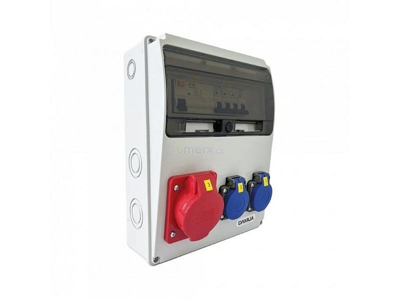 Zásuvková skříň 11M 16A 5p, 2x230V - 11 modulů s jističi a chráničem - 6kA