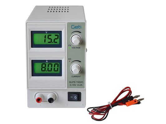 Laboratorní zdroj Geti pro napájení různých elektronických zařízení plynule reguluje výstupní napětí a výstupní proud. Spolehlivě udržuje nastavené hodnoty bez ohledu na kolísání napájecího napětí nebo připojenou zátěž. Zařízení je opatřeno ochranou proti zkratu tak, aby v případě nenadálé události bylo bezpečné pro uživatele a zároveň nedošlo k jeho zničení. Napájecí zdroj je vhodný pro práci v laboratořích, dílnách, výrobě, ale také jako učební pomůcka ve školách.
