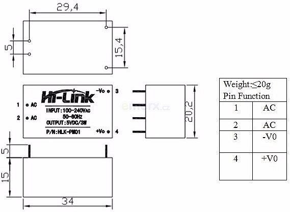 Zdroj spínaný 12V/0.25A 3 W HLK-PM12 Zdroj spínaný 12V/0.25A 3 W HLK-PM12