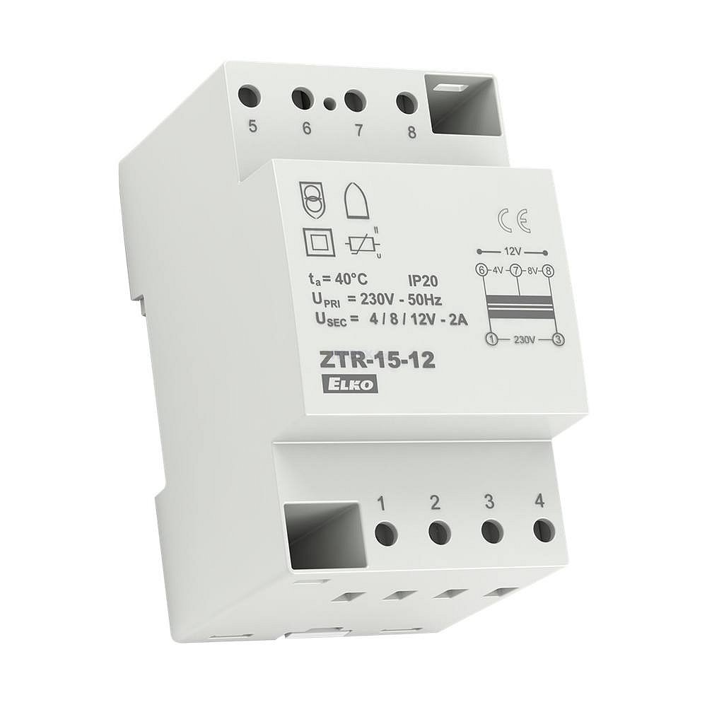 Zvonkový transformátor na DIN lištu 1,25A, 3 výstupy, 4V/5VA AC, 8V/10VA AC, 12V/15VA AC